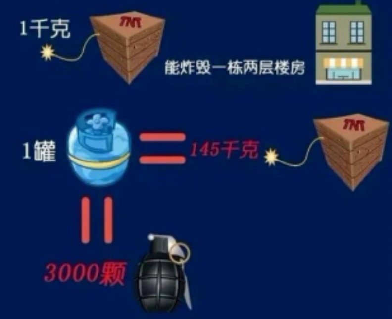 讓人痛心的是,在短短兩天內(nèi),液化氣罐爆炸事故再次發(fā)生,6月23日11時,河南鄭州新密市一處門面房因液化氣泄漏引發(fā)爆炸,導致房屋坍塌,造成4人被埋,其中2人重傷,2人輕傷,均已送醫(yī)院治療。據(jù)了解,液化氣罐一般是10升裝,爆炸釋放出相當于145公斤TNT炸藥的威力。液化氣罐在長期充裝、運輸、使用過程中,受到碰撞、暴曬、介質(zhì)腐蝕的損害,會產(chǎn)生裂紋、凹坑、變型等缺陷引發(fā)爆炸。